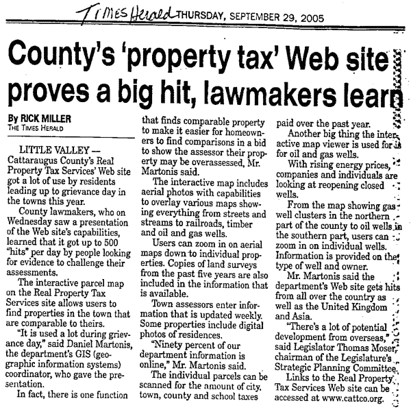 Article in Olean Times Herald from September 2005 Department: Real Property and GIS Filed under: Updated on Wed, 06/09/2010 - 9:03am