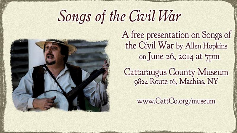 Allen Hopkins will be giving a presentation on "Songs of the Civil War" at the Cattaraugus County Museum.