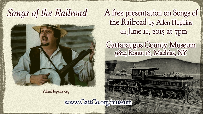Allen Hopkins will be giving a presentation on "Songs of the Railroad" at the Cattaraugus County Museum.