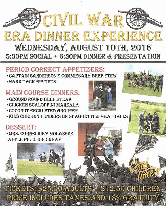 Enjoy dinner with foods similar to what was enjoyed during the Civil War Era!