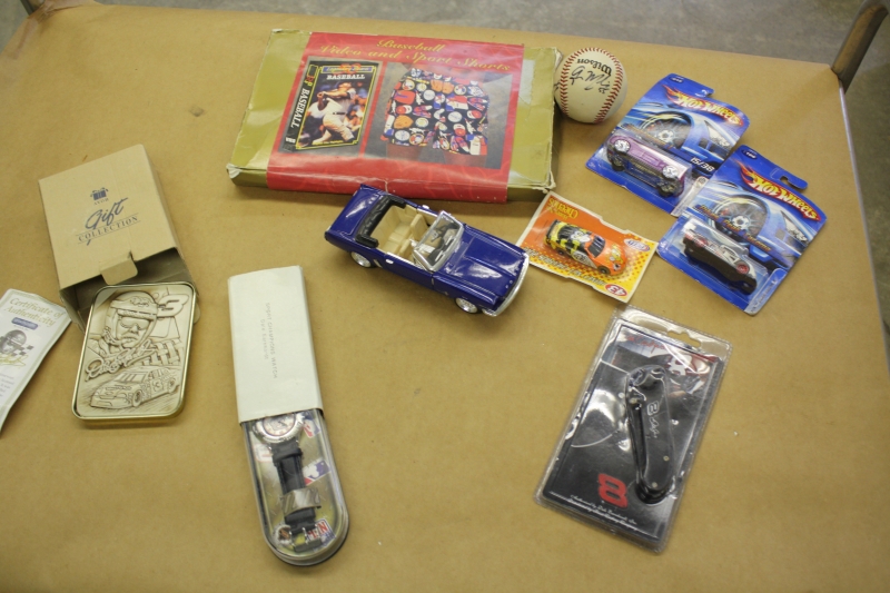 | LOT 50 | HOTWHEEL CARS, BASEBALL VIDEO, DALE EARNHARD WATCH, KNIFE, PLAQUE | SHERIFF | |||||