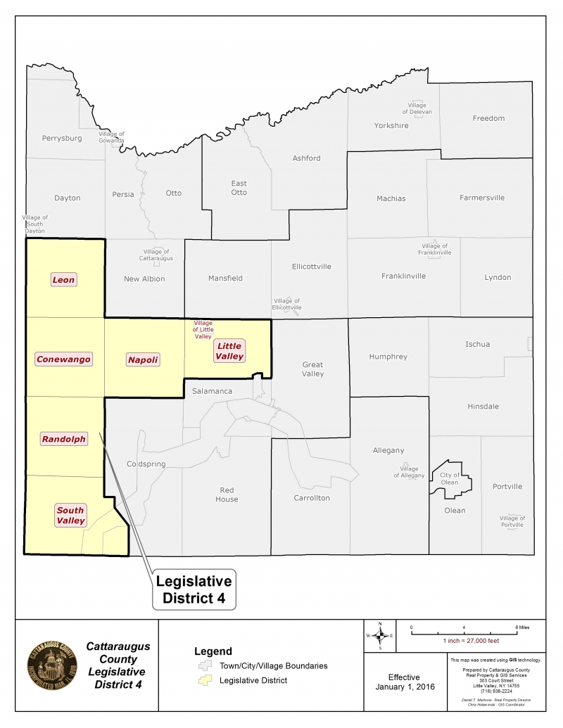 The Cattaraugus County Legislative District 4 represents the following municipalities: