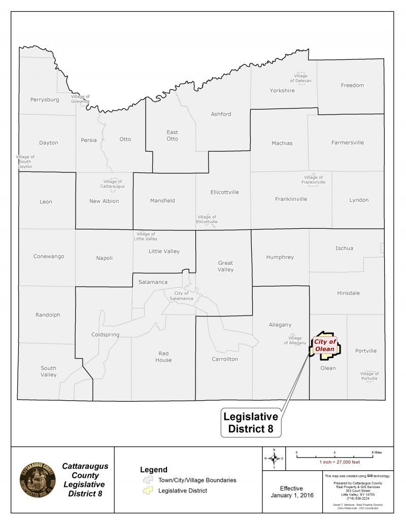 The Cattaraugus County Legislative District 8 represents the following municipalities: