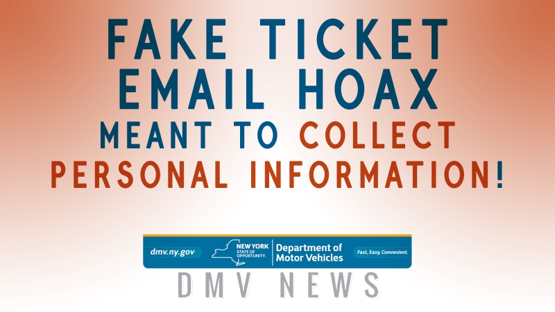 The New York State Department of Motor Vehicles is warning consumers of a fake ticket email hoax meant to collect personal information. Please share the below with colleagues, older adults and their families, and others who may be interested.