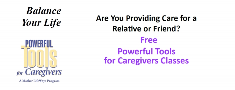 Balance your life. Powerful Tools for Caregivers. Are you providing care for a relative or friend? Free Powerful Tools for Caregivers Classes.