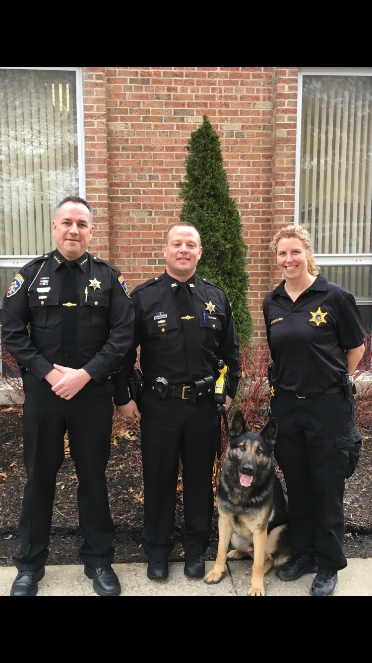 Sheriff Timothy Whitcomb, Deputy Tim Pence, K-9 Nichols and Lieutenant Melanie Churakos, the supervisor of the canine position.